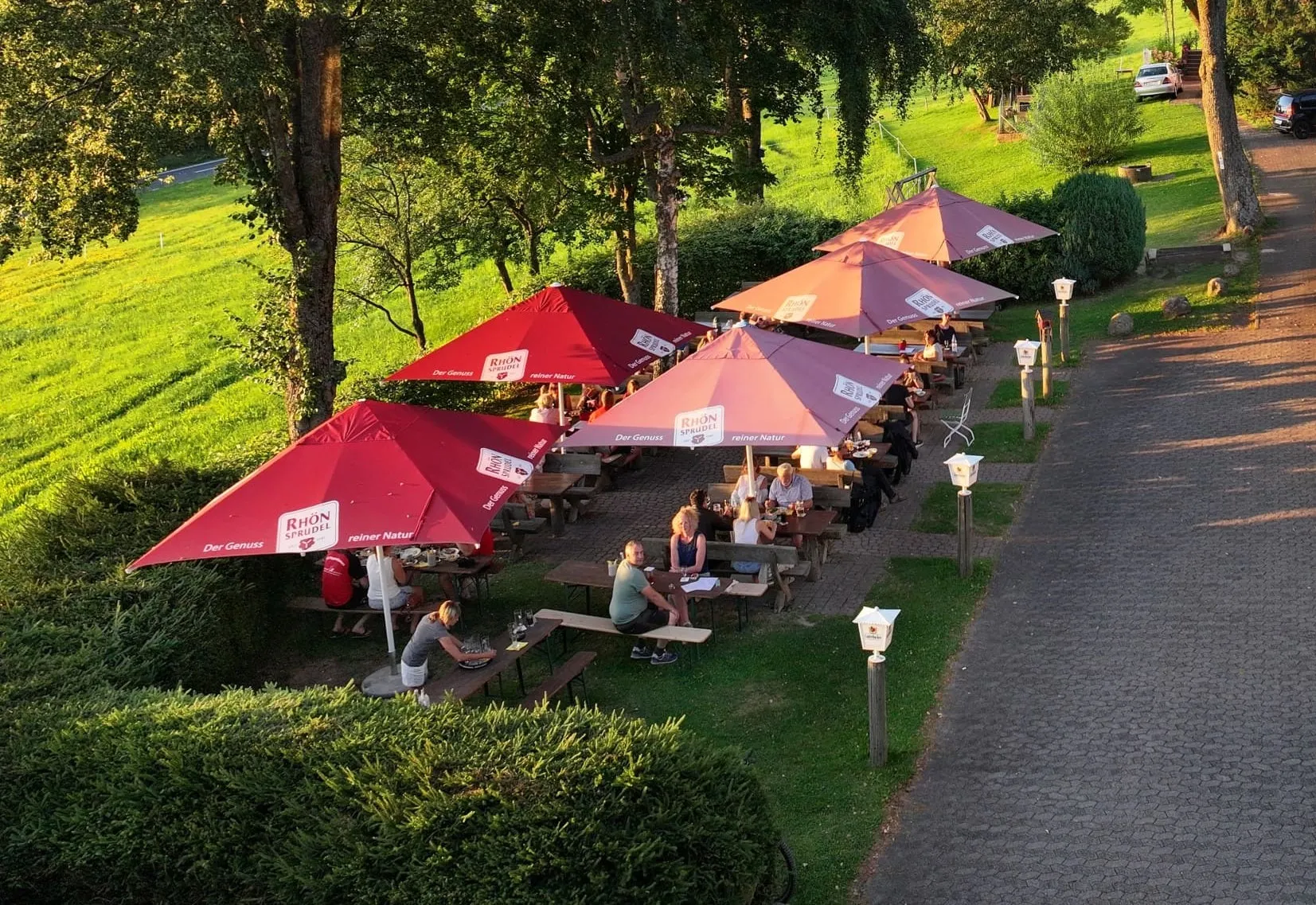 Erleben Sie einen der schönsten und sowie einen der höchstgelegenen Biergärten in der Rhön. Er ist großzügig angelegt und umfasst ca. 100 Sitzplätze. Die rustikalen Bänke und Tische unter Bäumen sowie die klare Luft der Rhön lädt Sie zum Entspannen und Verweilen ein. Die spektakuläre Aussicht über die Rhön, das Land der offenen Ferne, genießt man am besten bei einem frisch gezapften Bier oder einem Glas Wein.